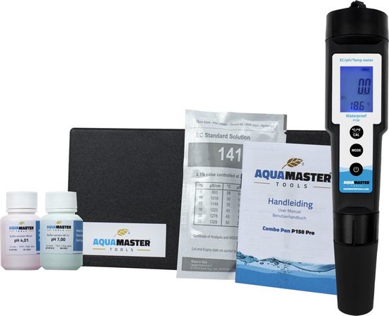 Der aktualisierte Combo Pen P150 Pro wurde weiterentwickelt und verfügt über eine verbesserte Software. Der große Vorteil dieses Modells besteht darin, dass der EC analog kalibriert ist, sodass die Kalibrierflüssigkeit nicht unbedingt 25 °C haben muss. Sie kalibrieren ohne Abweichungen.
