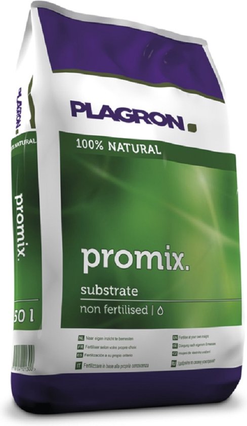 Durch die Zugabe verschiedener Faserarten wird eine Leichtigkeit und ein Sauerstoffgehalt erreicht, die man nur von Plagron-Qualitätserde erwarten kann. Promix wurden keine Düngemittel zugesetzt, sondern nur Plagron-Wurmhumus. Der Wurmhumus sorgt für ein gesundes Bodenleben und aktiviert die biologischen Düngemittel, die ab dem 1. Tag zugeführt werden müssen. Dadurch ist Promix der am besten geeignete Boden für die organische Düngung, ganz nach Ihrer eigenen Einsicht und Wahl. Das Ergebnis ist ein 100 % biologisches Endprodukt. Promix liefert den höchsten Ertrag in Kombination mit Plagron Alga Grow, Alga Bloom und Plagron-Zusätzen.