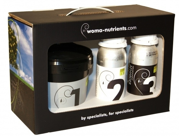 Das Woma-Starterpaket enthält ausreichend Nährstoffe, um etwa 2500 l Lösung herzustellen. Das Starterpaket enthält eine komplette Nährstofflinie bestehend aus: Basisnährstoff, Wurzelstimulator und einem Härter.